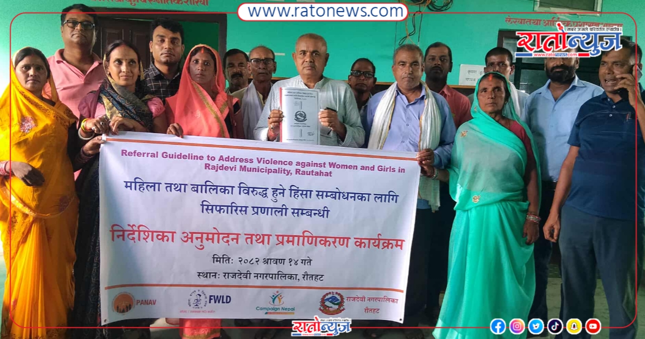 मेवालाल यादव रौतहट । रौतहटको राजदेवी नगरपालिकामा महिला तथा बालिका विरुद्ध हुने हिंसाको प्रभावकारी सम्बोधनका लागि सिफारिस प्रणाली सम्बन्धी निर्देशिका