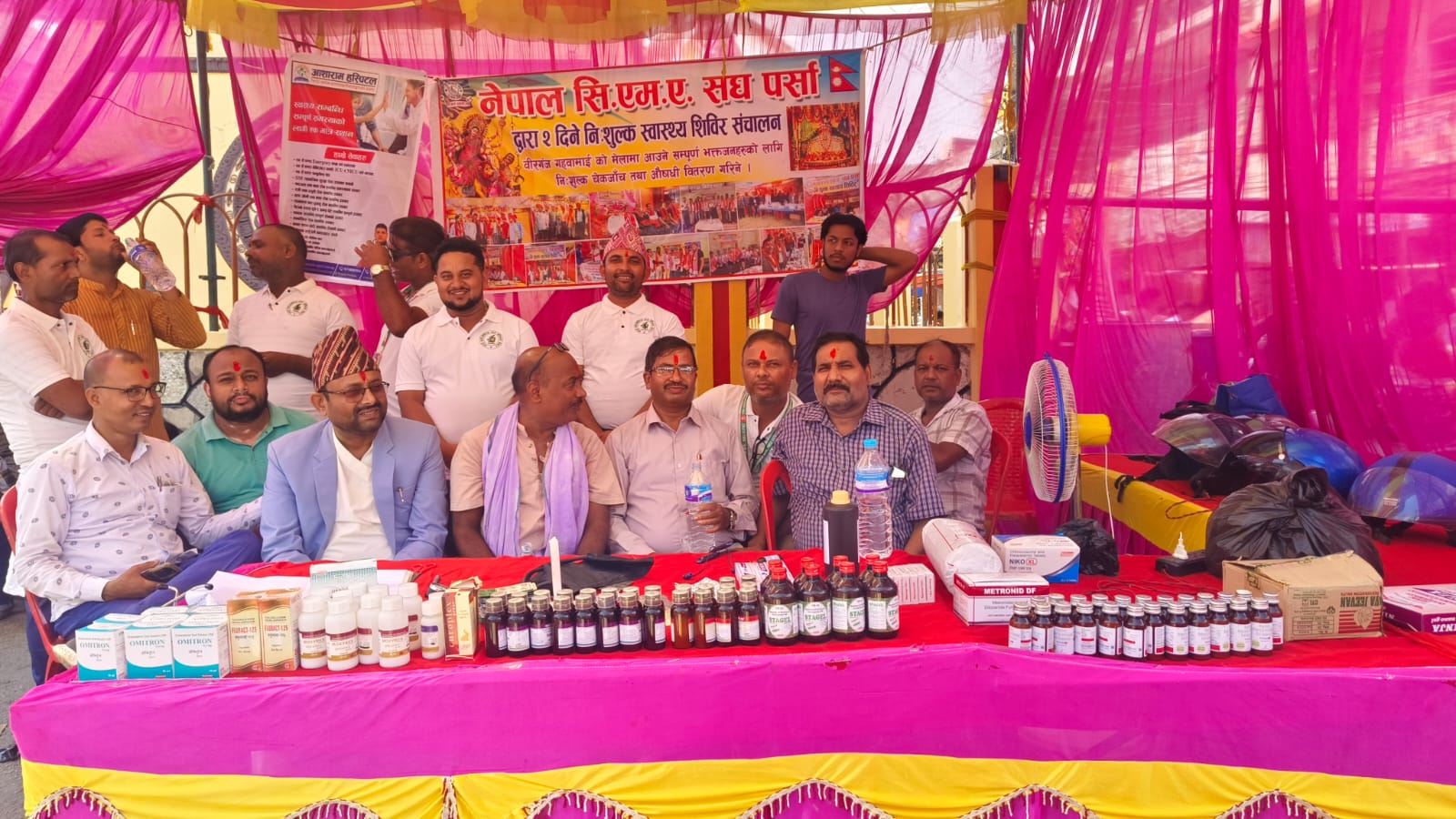 वीरगञ्ज । दशैँ मेलामा घुम्न आएका भक्तजन तथा दर्शनार्थीहरूको स्वास्थ्य सुरक्षालाई मध्यनजर गर्दै नेपाल सि.एम.ए. संघ, जिल्ला कार्य समिति पर्साले आज (सोमबार)देखि घण्टाघरमा दुई दिने निःशुल्क स्वास्थ्य शिविर सञ्चालन गरेको छ।