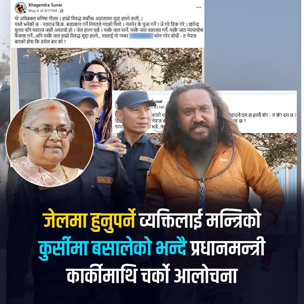 अन्तरिम सरकारकी प्रधानमन्त्री सुशीला कार्कीले विवादास्पद पृष्ठभूमिका खगेन्द्र सुनारलाई विस्तारित मन्त्रिपरिषद्मा सिफारिस गरेपछि तीव्र आलोचना सुरु भएको छ। सामाजिक सञ्जालदेखि