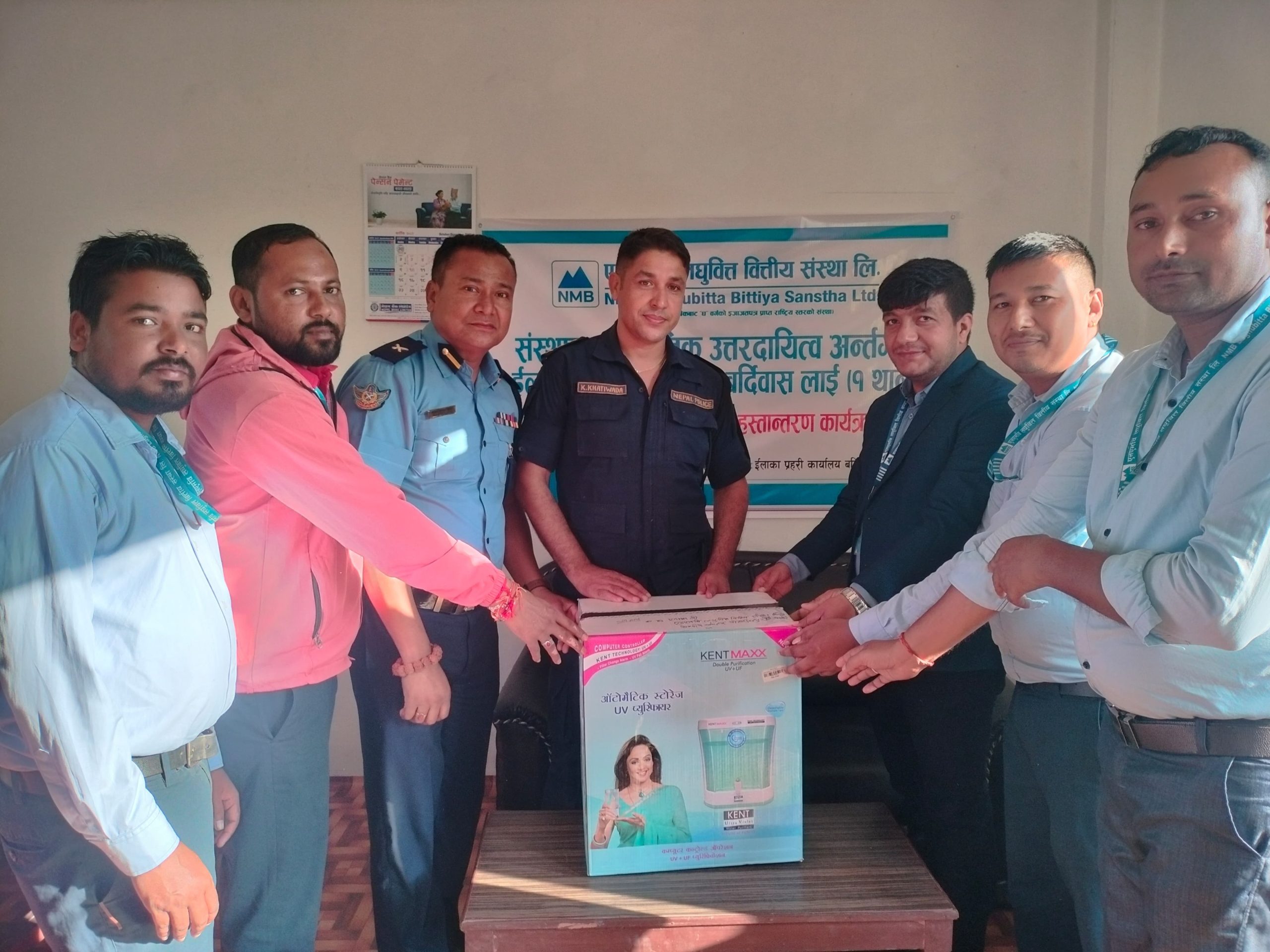 एनएमबि लघुवित्तद्वारा इलाका प्रहरी कार्यालय बर्दिवासलाई ईलेक्ट्रोनिक पानिको फिल्टर (RO) हस्तान्तरण