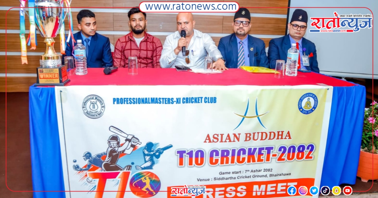 भैरहवा । रुपन्देहीको भैरहवामा शनिबारदेखि टी–१० जिल्लास्तरीय क्रिकेट प्रतियोगिता हुने भएको छ । प्रोफेसनल मास्टर्स–११ क्रिकेट क्लब, भैरहवाको आयोजनामा ‘एशियन